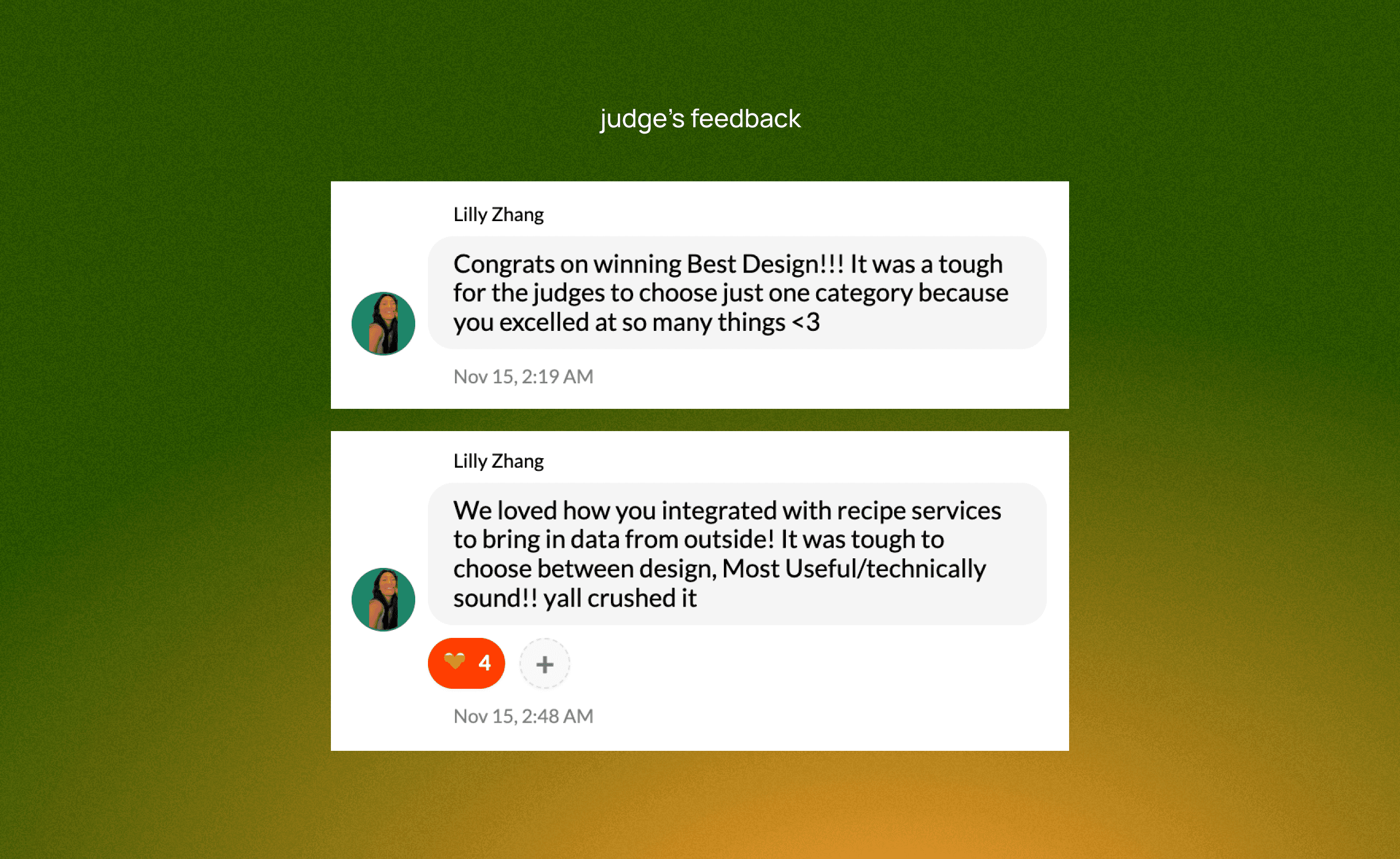 Not only did we win Best Design Award; we were also recognized for technical implementation and practical utility in addressing household food waste.